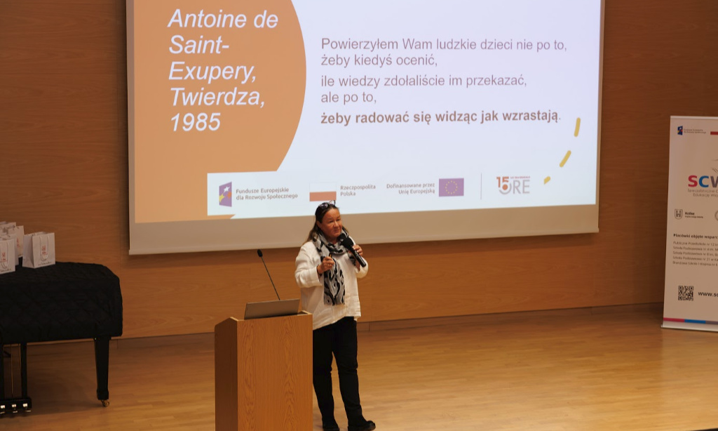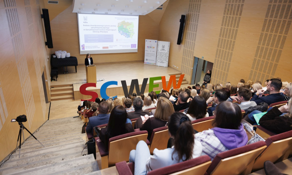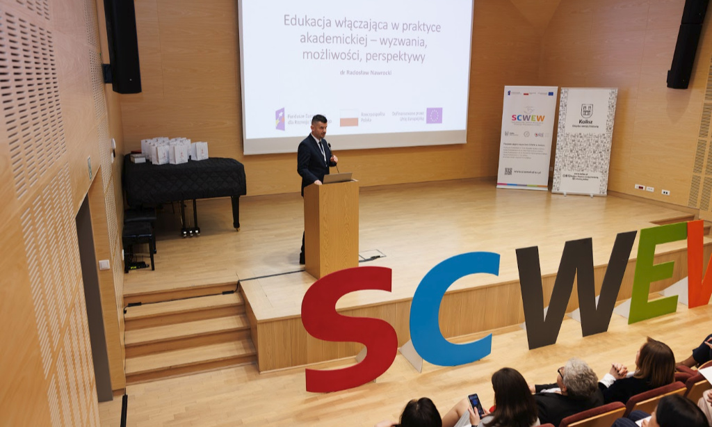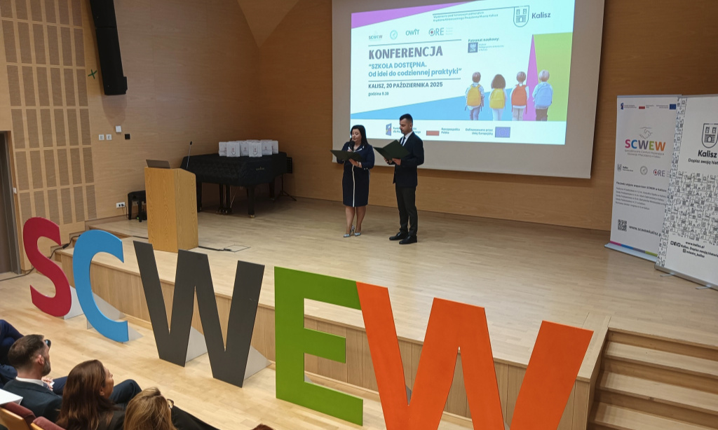 20 października w auli WP-A UAM w Kaliszu podczas Konferencji Inaugurującej działanie SCWEW w Kaliszu zgromadziliśmy osoby, które łączy wspólna misja – tworzenie edukacji otwartej i dostępnej dla każdego ucznia. Konferencja pod hasłem przewodnim „ Szkoła dostępna – od idei do codziennej praktyki” zgromadziła ponad 100 osób z różnych środowisk. Przyjazna atmosfera, zaangażowanie uczestników i ciepłe reakcje publiczności pokazały, że idea edukacji włączającej znajduje w Kaliszu żyzny grunt i otwarte serca. Każdy uśmiech, każda rozmowa i każda chwila spędzona razem były potwierdzeniem, że praca na rzecz edukacji włączającej ma głęboki sens. Konferencja była wyjątkową okazją, by wspólnie zastanowić się jak przekuć wartości i założenia edukacji włączającej w konkretne działania, które każdego dnia mogą zmieniać nasze szkoły. Chcieliśmy, by konferencja stała się inspiracją, okazją do wymiany doświadczeń, ale także okazją do rozmów o tym, jak budować szkołę dostępną – otwartą, empatyczną i sprzyjającą grupie zróżnicowanej. Wierzymy, że to spotkanie stanie się impulsem do dalszego budowania edukacji, w której każdy uczeń ma swoje miejsce i szansę na rozwój.